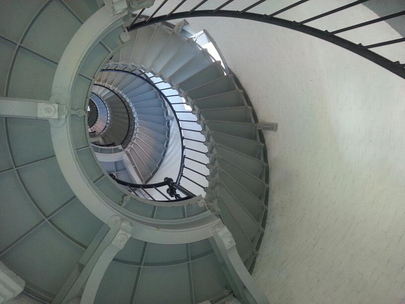 My son, Ben, and I went to the Ponce Inlet Lighthouse on his recent leave from the US Navy. My stomach did the little flip-floppy thing just trying to take photographs of the 17 story red brick tower. But remember, I am afraid of nothing … and I am with my kid. No fear. so then, I go inside to make the climb to the top and see this: